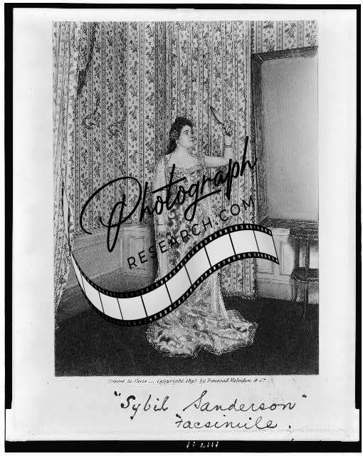 Sybil Sanderson, 1895, holding up mirror