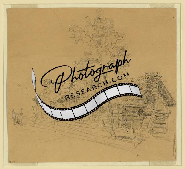 Log Cabin beside Tree,Rail Fence,American Civil War,Alfred Rudolph Waud