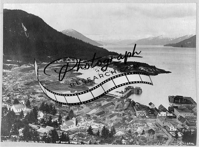 View of City & Mountains,Wrangell,Alaska,AK,Waterfront,February 1914,City