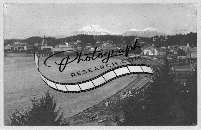 View of City,Beach,Mountains,Sitka,Alaska,AK,United States,1900-1923,Shoreline