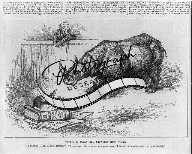 Trying to bully,browbeat each other,James G. Blaine,Rhino,Perry Belmont,badger