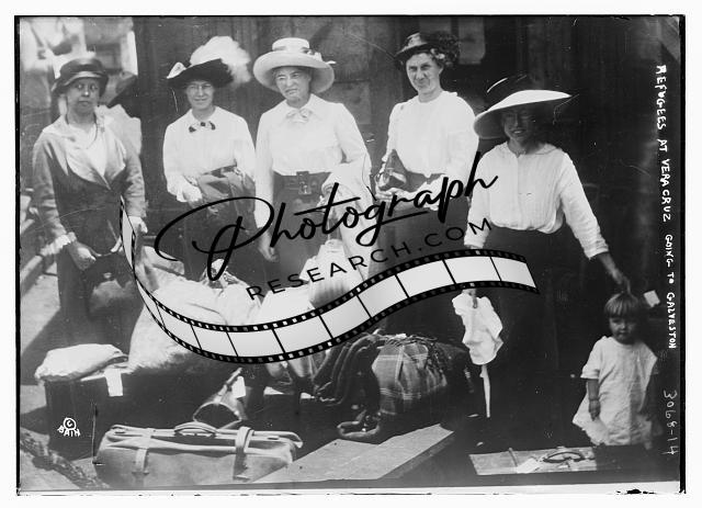 Refugees at Vera Cruz going to Galvaston,Mexico,1910-1915,women,luggage