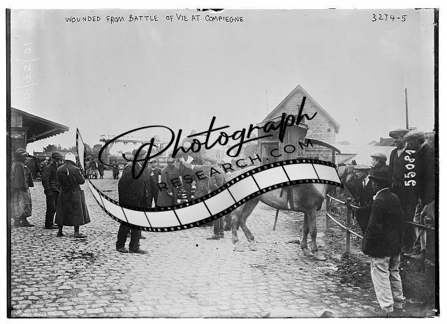 Wounded from battle of Vie at Compiegne,horse,people,soldiers,Bain News Service
