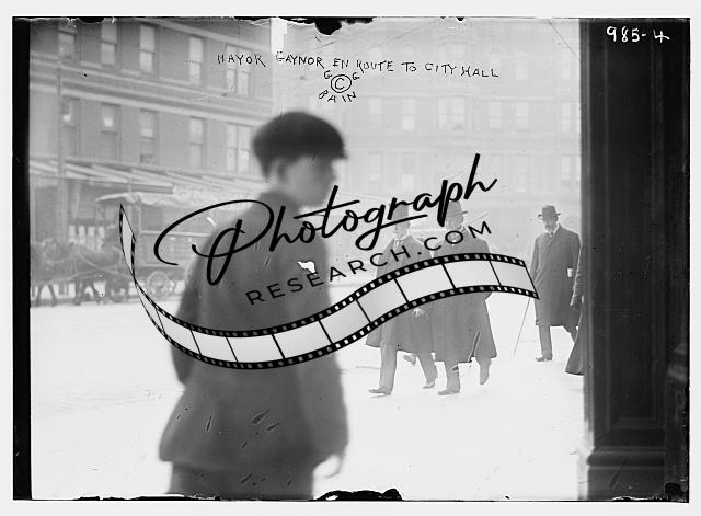 Mayor William Jay Gaynor,1849-1913,with others walking along street to City Hall