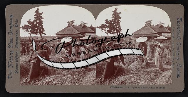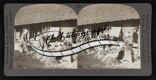 Rice culture in Japan. Laying the rice out on straw mats to dry