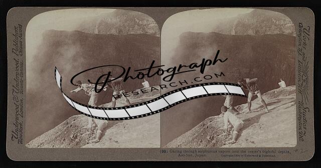 Gazing through sulphurous vapors into crater's frightful depths,Aso-San,Japan