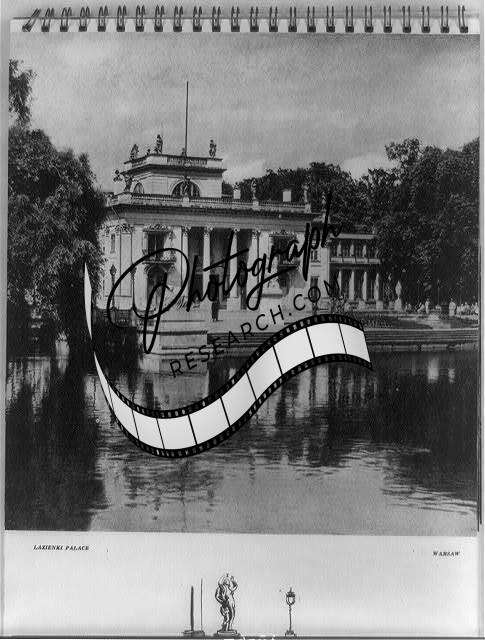 Lazienki Palace,castle,buildings,water,tree,statues,sculpture,Warsaw,Poland,1941