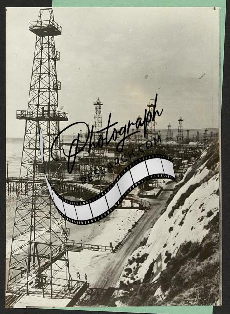America's petroleum industries pour out fuel,oil well derricks,California Coast
