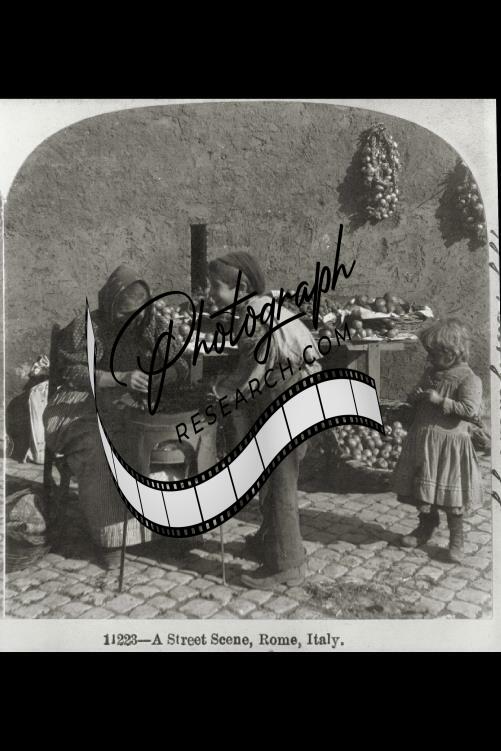 A Street Scene,Rome,Italy,Portable Stove,Woman,Boy,Girl,c1900,Basket of Fruit