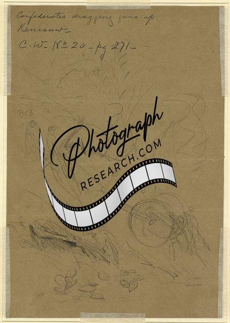 Confederates dragging guns up Kenesaw Mountain,Georgia,American Civil War,Waud