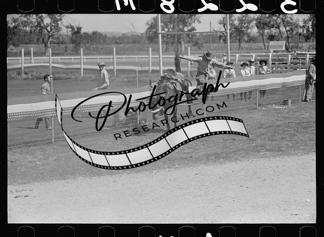 Riding a bucking horse,rodeo,Miles City,Montana,MT,Arthur Rothstein,FSA,23