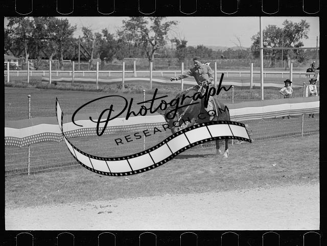 Riding a bucking horse,rodeo,Miles City,Montana,MT,Arthur Rothstein,FSA,19