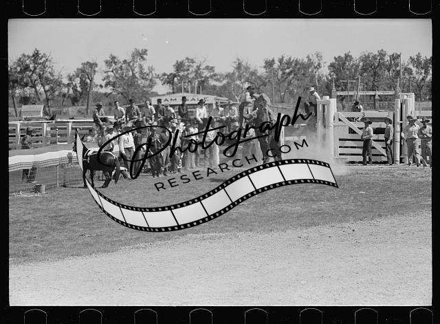Riding a bucking horse,rodeo,Miles City,Montana,MT,Arthur Rothstein,FSA,26