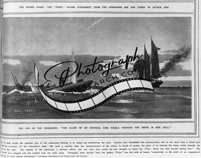 Second Phase,PRIZE taking punishment from submarine,1918,WWI,World War I
