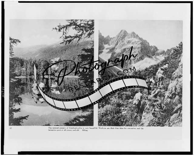 Czechoslovakia,boat on lake, hiking up mountain 1956