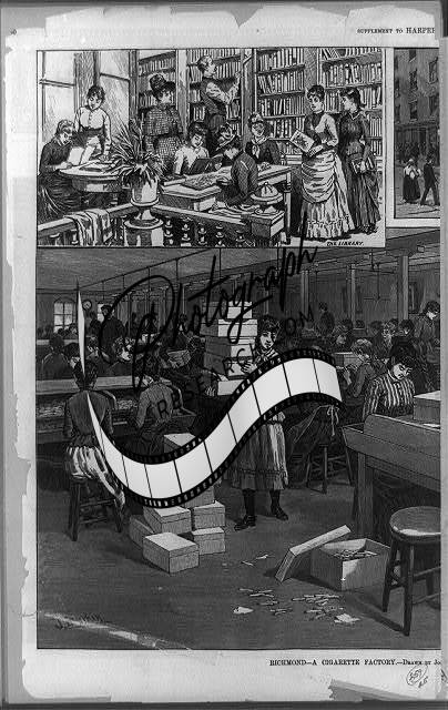 Richmond,cigarette factory,industry,women,employment,Virginia,VA,J Durkin,1887