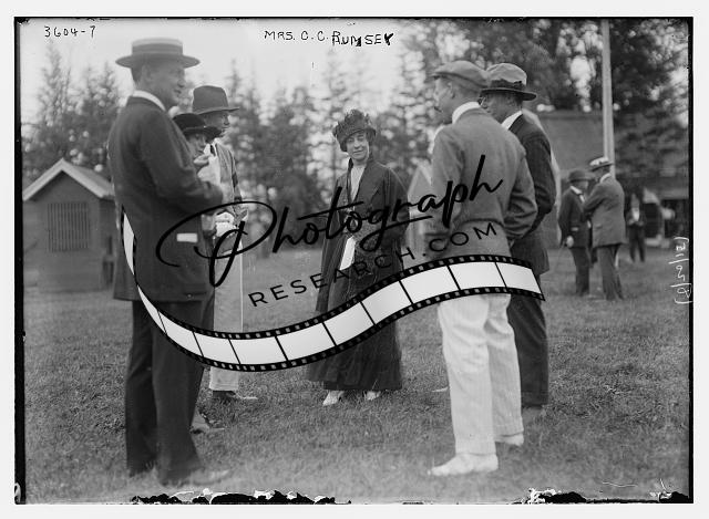 Mrs. C.C. Rumsey,group of people gathered outside,Bain News Service