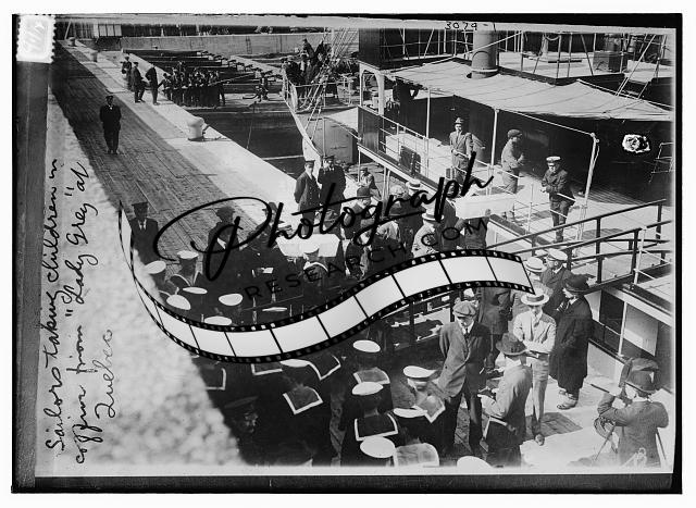 Sailors taking children in coffins from LADY GREY at Quebec,1910-1915,ship
