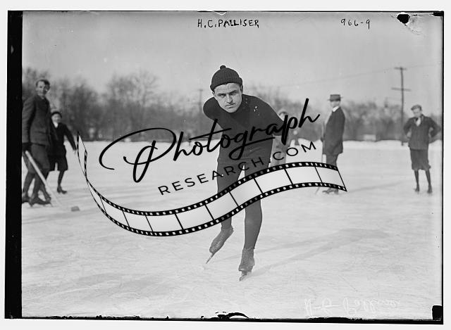 H.C. Palliser ice-skating,others in background,snow,ice skates