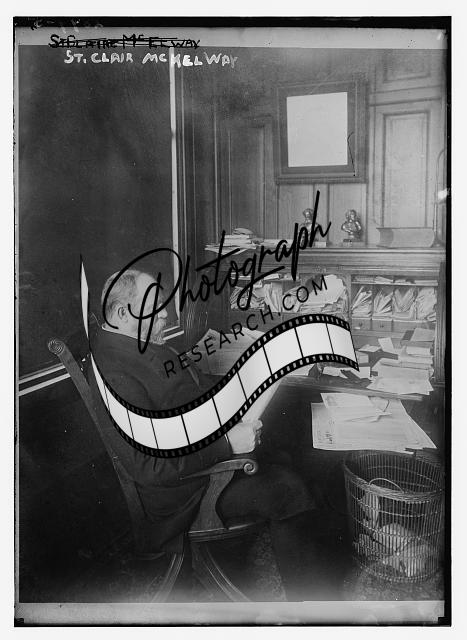 St. Clair McKelway,seated at desk,papers,waste basket,1910-1915