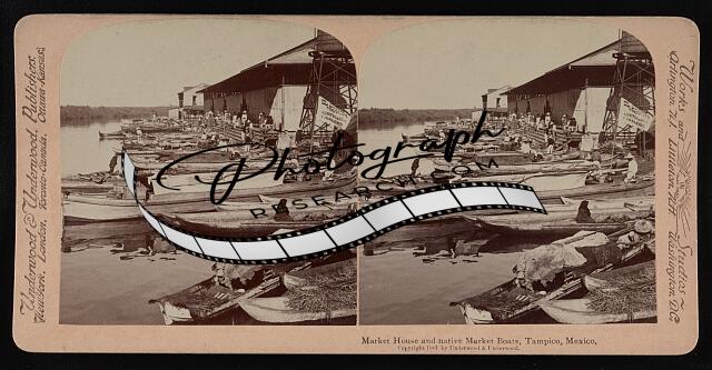Market house and native market boats, Tampico, Mexico