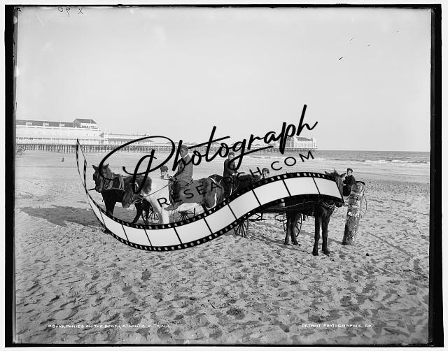 Ponies,beach,carts,wagons,sand,shore,piers,Atlantic City,New Jersey,NJ,1900