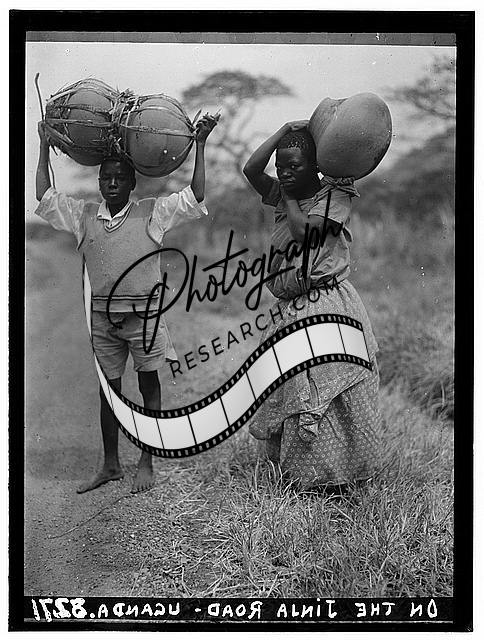 Uganda Boy & Girl carrying jars,From Hoima to Fort Portal,Uganda,Africa,1936