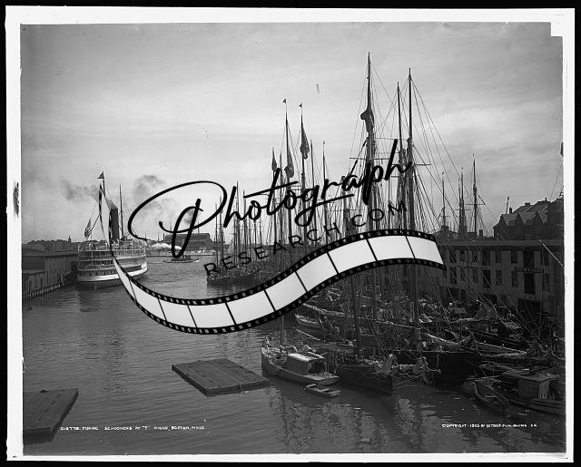 Schooners,T wharf,boats,steamers,ships,piers,Boston,Massachusetts,MA,c1905