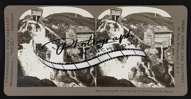 Little log-hut flour mills by waterfalls, Roldal, Norway