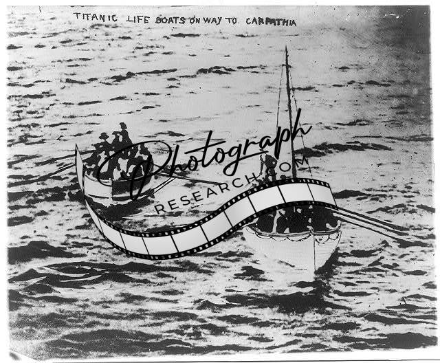 TITANIC life boats on way to CARPATHIA,passegers rowing,April 15,1912,waves