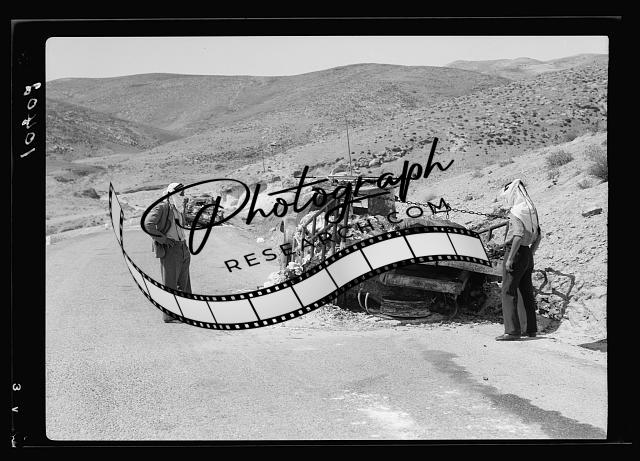 Palestine Potash lorries burned down on the Jericho road,Middle East,c1935
