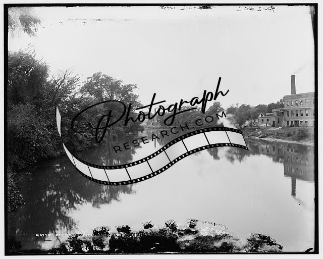 Vermilion River,water bodies,buildings,Pontiac,IL,Detroit Publishing Co,1890