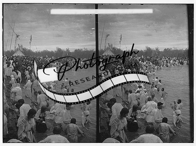 Road to Jericho,Jordan,Russian pilgrims at the River Jordan in their shrouds