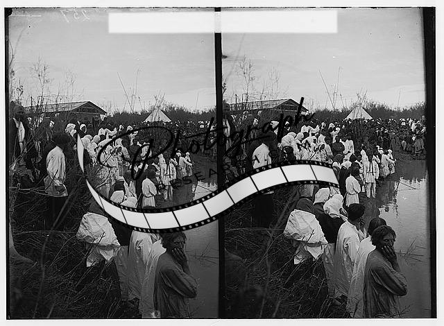 Road to Jericho,Jordan,Russian pilgrims at the River Jordan in their shrouds