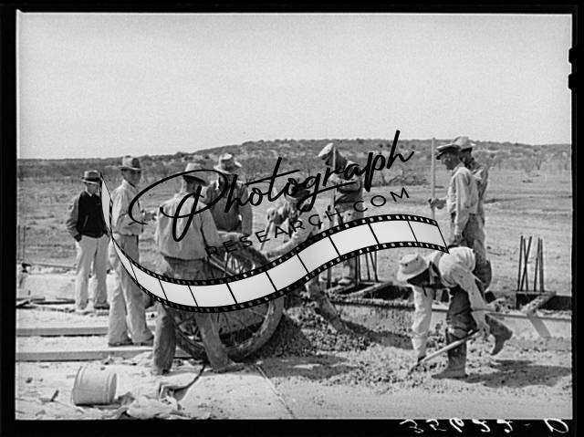Title: Road worker mixing concrete in Menard County, Texas