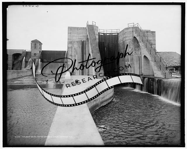 Great locks,hydraulic engineering,Chicago Drainage Canal,Lockport,Illinois,c1908