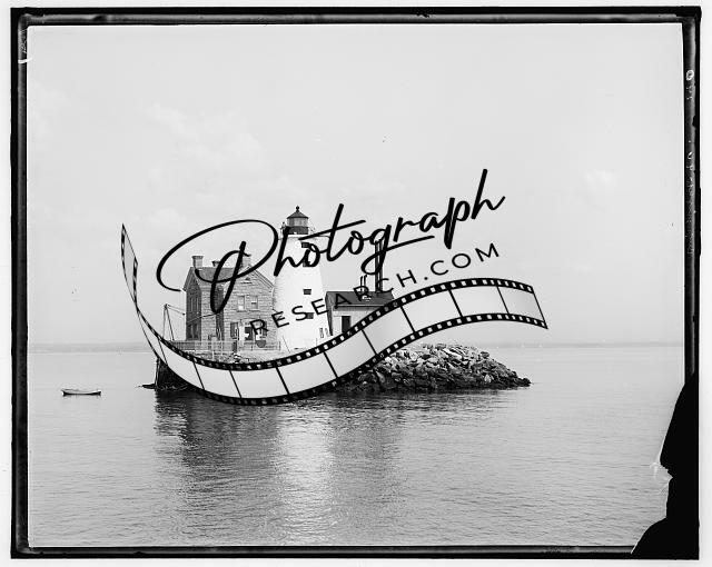 Lighthouse,island,buildings,water bodies,rocks,Detroit Publishing Company,c1896