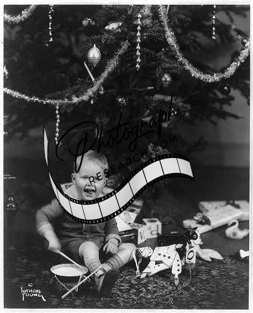 Under the Christmas tree,Boy with toys under tree,playing with drum,c1926,Xmas