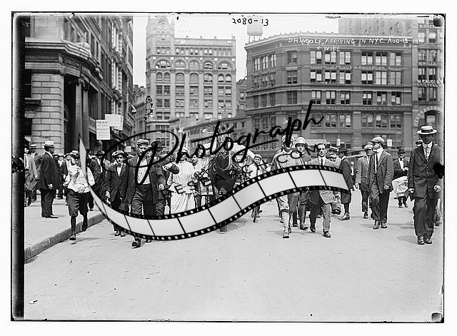 D.H. Woolf,wife arriving in N.Y.C.,New York City,horse,people,street