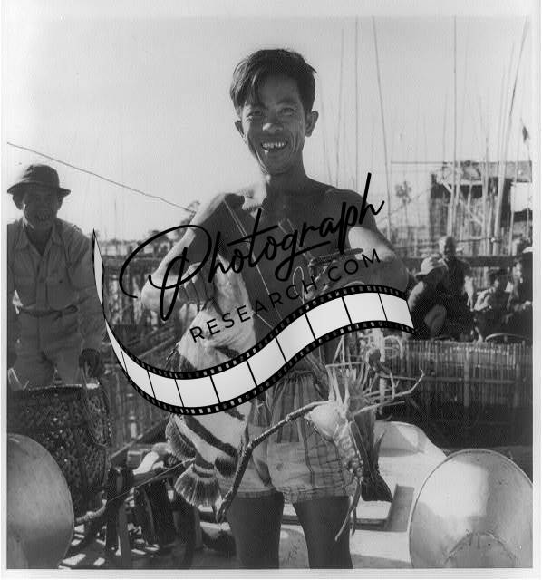 Small fishing village,boat,Tonlé Sap,Lake,basin,lower Mekong River,Cambodia,1958