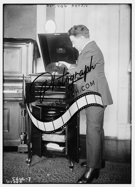 Robyn,music players,sound machines,victrolas,men,records,suits,Bain News Service