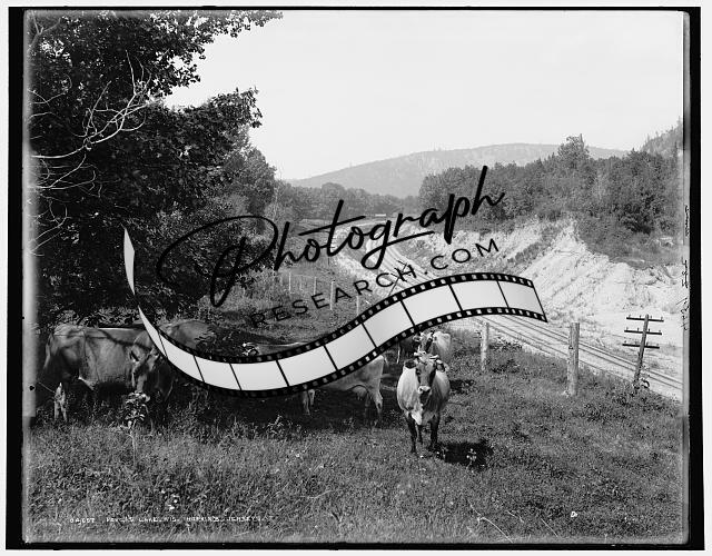 Hopkin's jerseys,cattle,cows,railroad tracks,Devil's Lake,Wisconsin,WI,1880