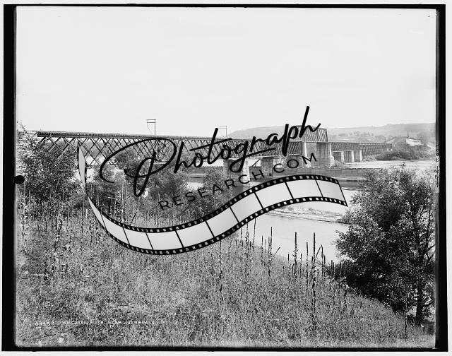 Wisconsin River,railroad bridges,tracks,water bodies,trees,Merrimac,WI,1880