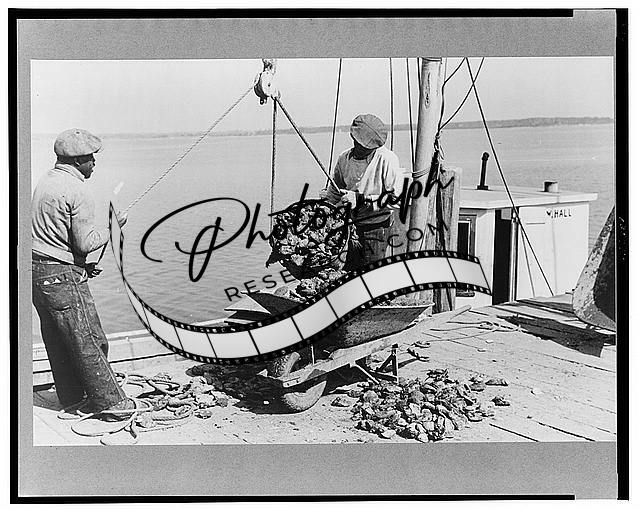 Unloading oysters,Rock Point,Maryland,MD,Farm Security Administration,FSA,10