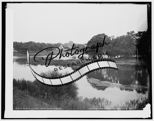 Above railway bridge,islands,trees,buildings,Fox Fiver,Geneva,Illinois,IL,c1898
