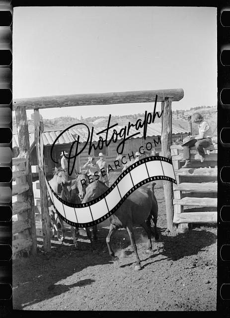 Driving colts into roundup corral,Quarter Circle U Ranch,Montana,MT,FSA