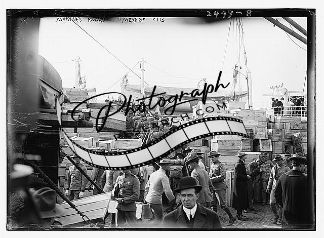 Summary: Photo shows American Marines mobilizing at League Island, Philadelphia Naval Shipyard, PA, in Feb. 1913, before going to Guantanamo, Cuba, in response to the Mexican Revolution. (Source: Flickr Commons project, 2008, and New York Times articles)