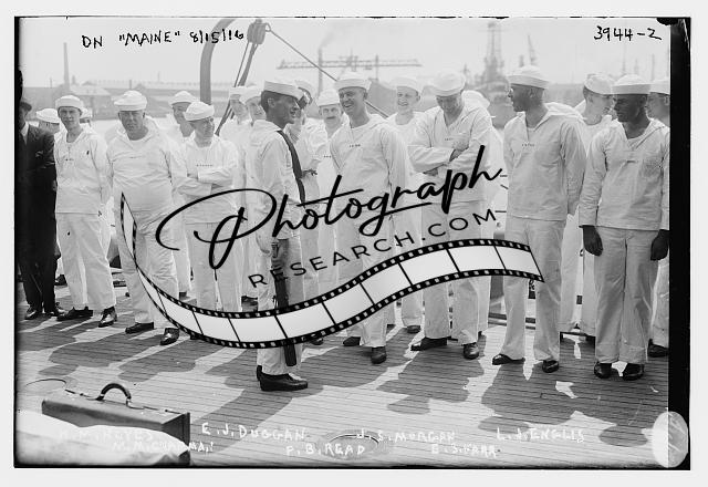 On MAINE,August 15,1916,sailors,ship,vessel,E.J. Duggan,Read,J.S. Morgan,Englis