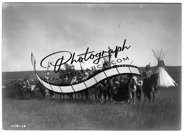 Parade,horseback,teepees,dwellings,Crow Indians,North,Native Americans,c1908