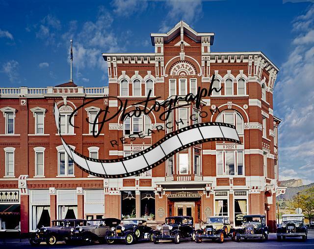 Vintage cars at the Strater Hotel,Durango,Colorado,CO,Carol Highsmith,c1990